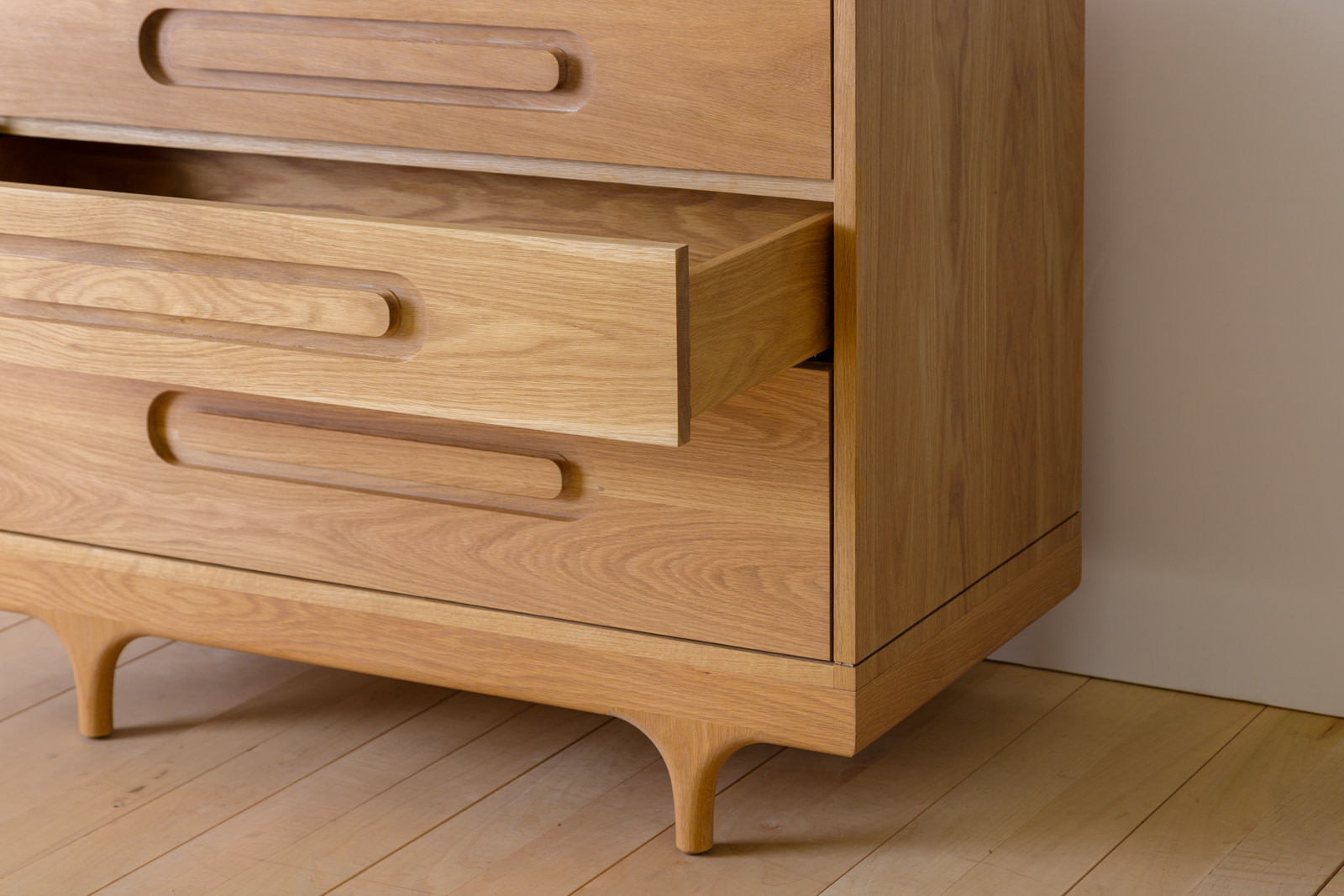 Crafted from solid Maple, White Oak or Black Walnut and finished by hand with Kalon’s premium, organic, non-toxic oil/wax finishes, the dresser is built for longevity and daily use. Soft-close drawers and carefully proportioned interiors support ease of use while preserving the clarity of the overall form.